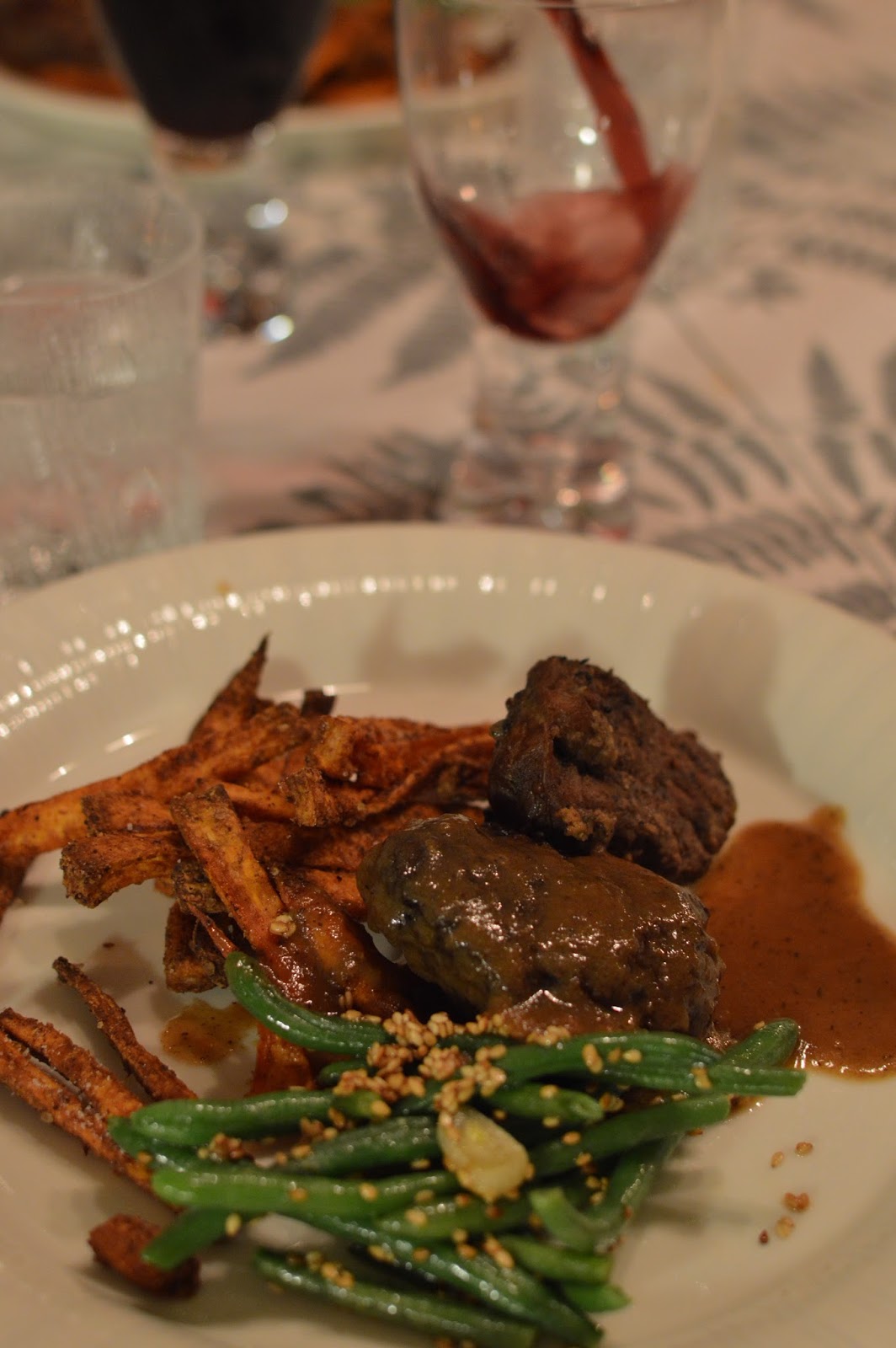 Harmittavasti moni hyvistä kasvisreseptipostauksista jäi turhan vähälle huomiolle. Viimeinen epätoivoinen yritys on yrittää nostaa ainakin kesäkurpitsagratiinin, paahdetun kukkakaalin ja pösilöitten sipuleitten -reseptejä. No, ehkä ihmiset ja hakukoneet löytävät reseptit ensi vuonna satokausien aikaan. Kasvisten parissa on hyvä jatkaa matkaa ensi vuonnakin. Se olkoon ensimmäinen lupauksistani tulevalle uudelle vuodelle. Onneksi Myllymäen Kasvikset -kirjassa on monta hyvää reseptiä kokkaamatta, vaikka monta on jo kokattukin. Kasvisten lisäksi meillä syötiin monenlaista muutakin. Liha oli usein nautaa tai lammasta, kala lohta tai kuhaa. Täplärapuja nostettiin omasta järvestä, mutta muut äyriäiset, simpukat ja osterit tulivat isommilta vesiltä.